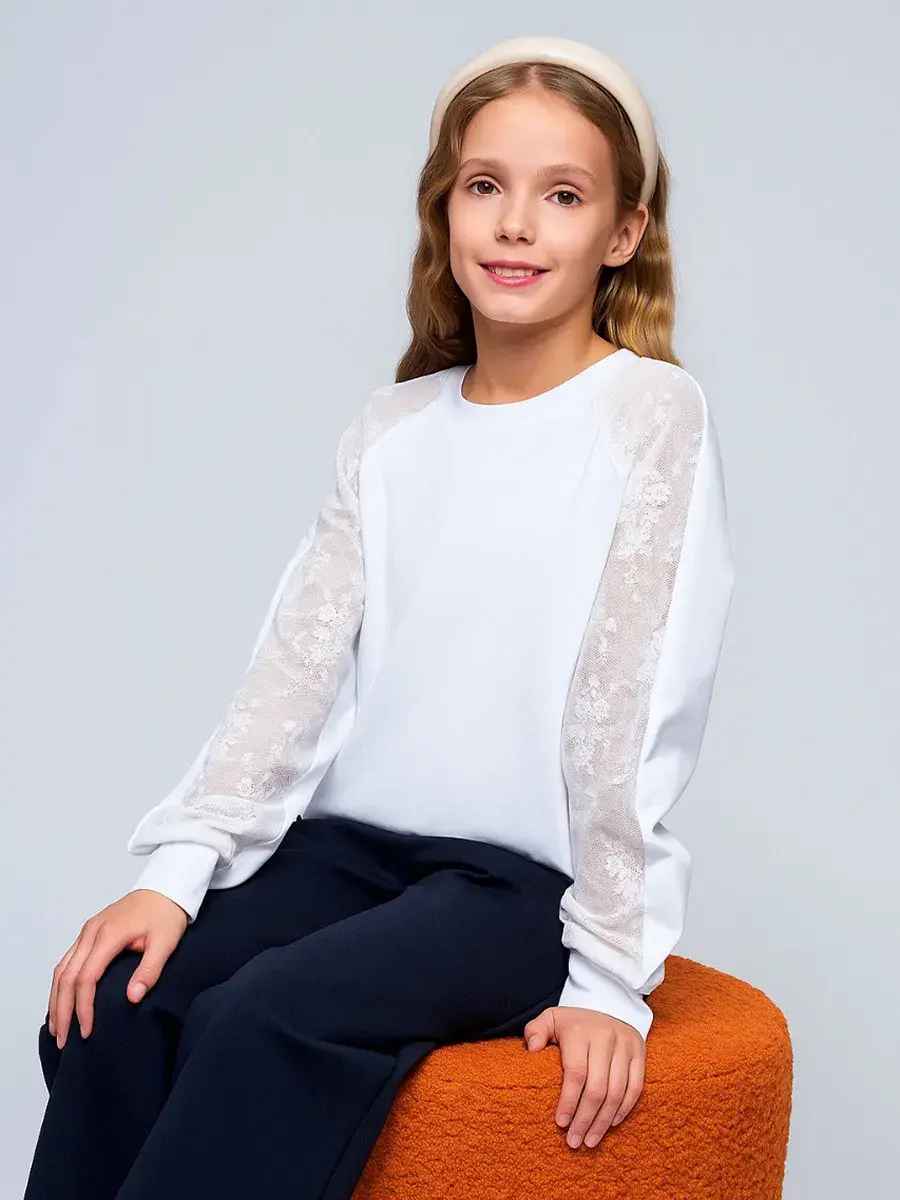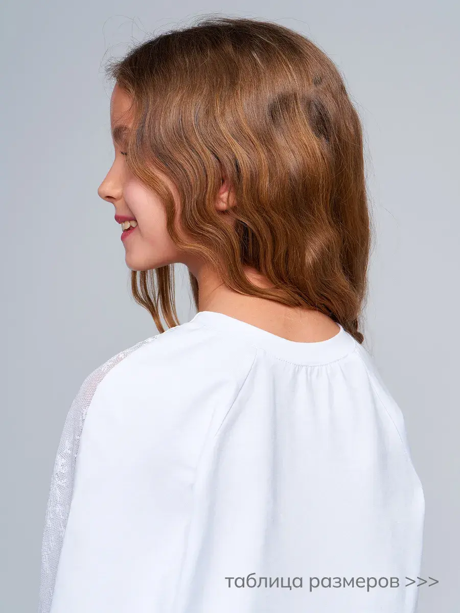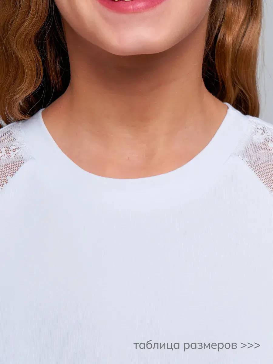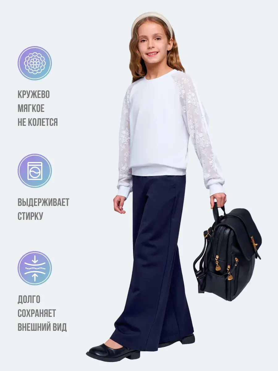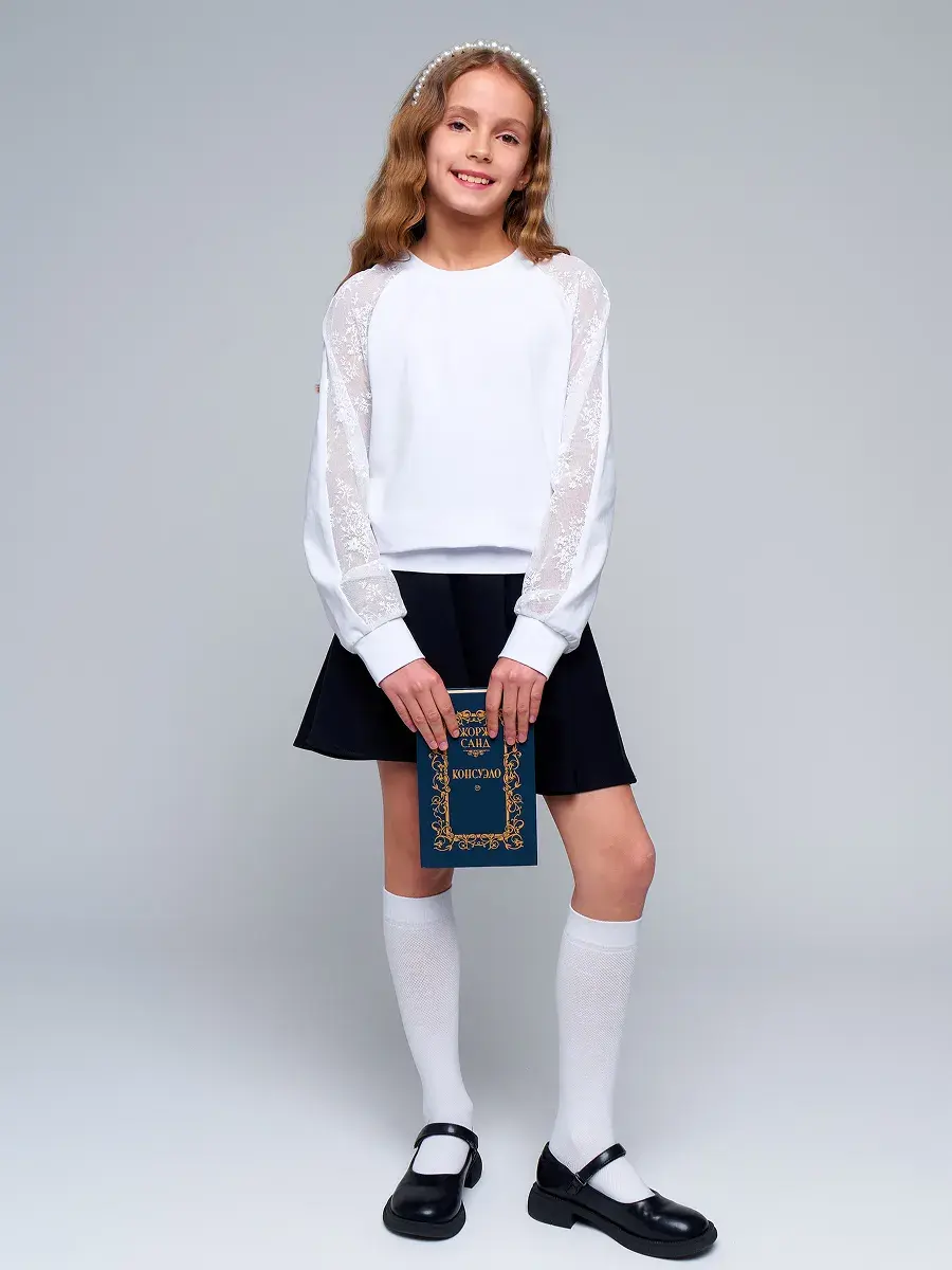 Стильная модель для девочек-подростков выполнена из эластичного трикотажа и гипюра, отличается практичностью и износостойкостью, что делает её отличным выбором для школьной формы. Сочетание классического стиля и современных тенденций делает детскую блузу актуальной для повседневной носке и для особых случаев осенью, весной или зимой.