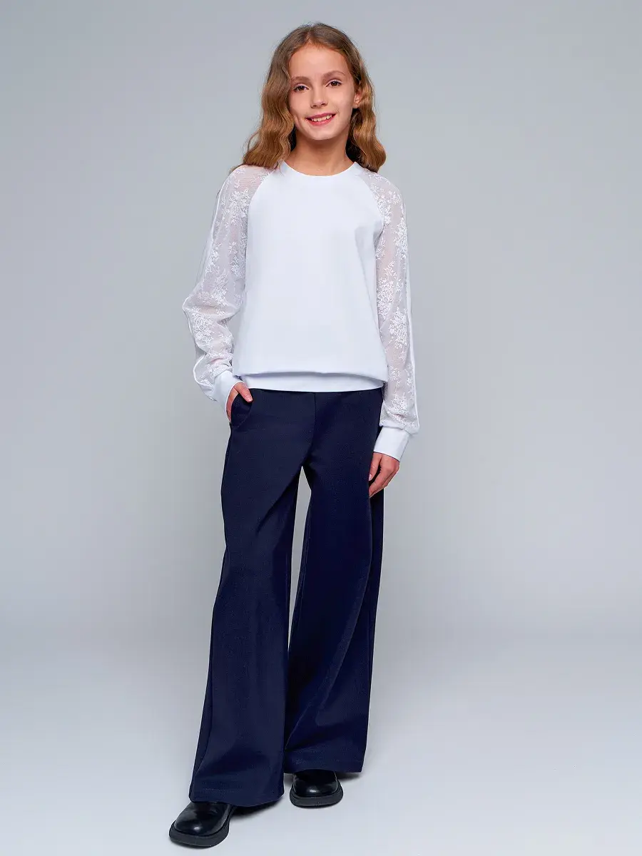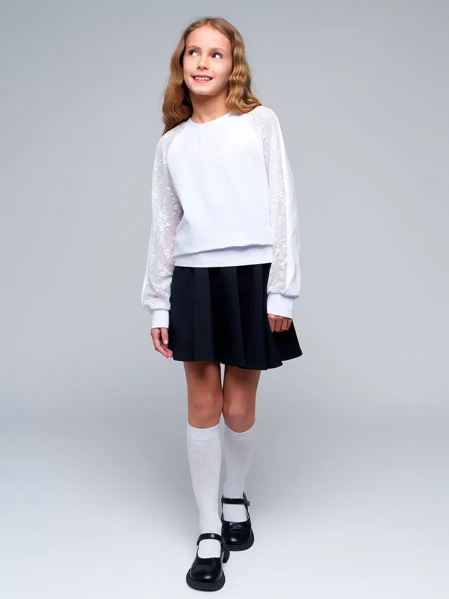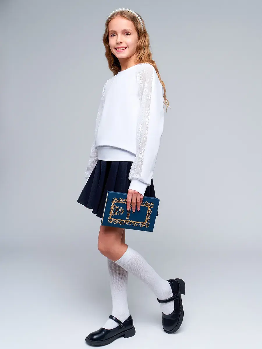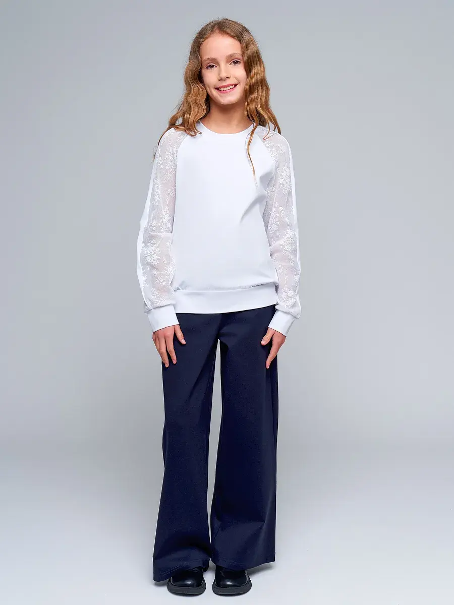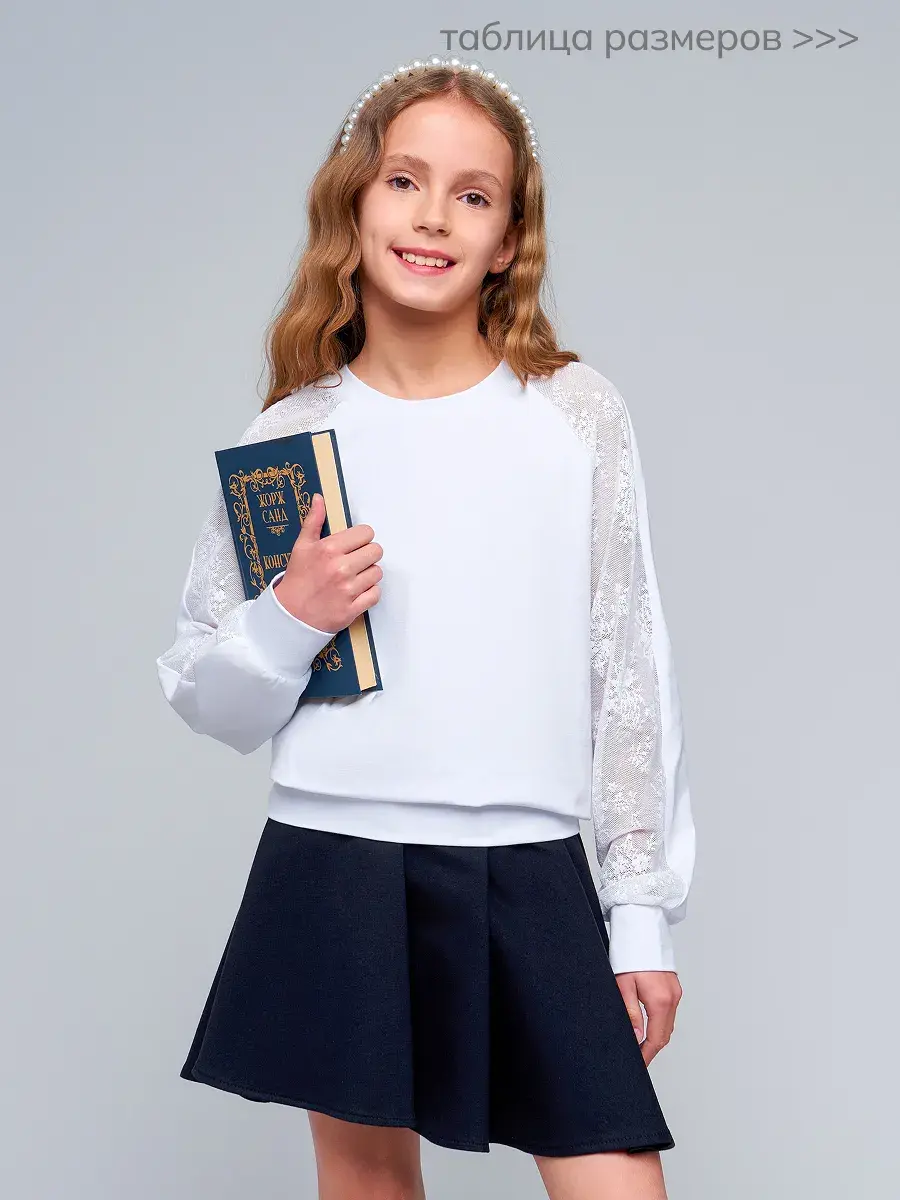 Стильная модель для девочек-подростков выполнена из эластичного трикотажа и гипюра, отличается практичностью и износостойкостью, что делает её отличным выбором для школьной формы. Сочетание классического стиля и современных тенденций делает детскую блузу актуальной для повседневной носке и для особых случаев осенью, весной или зимой.