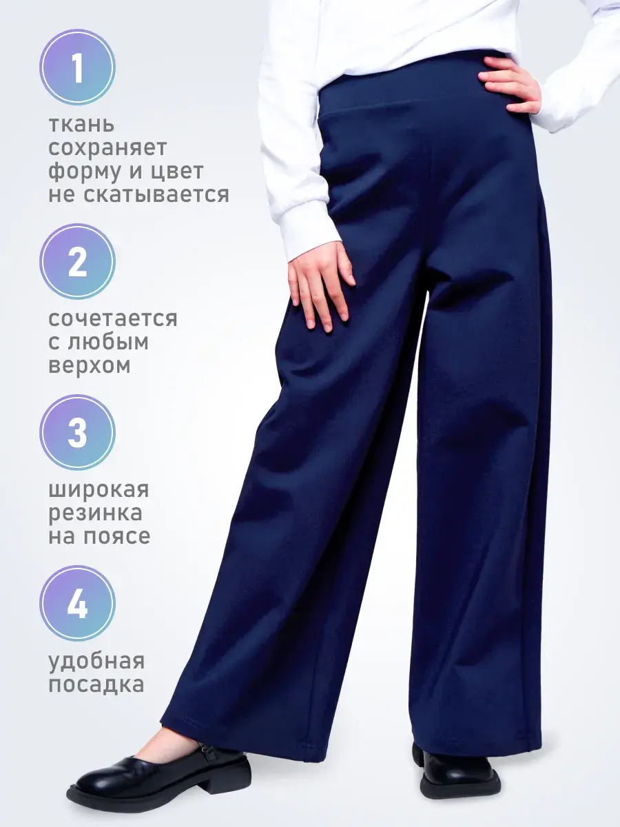 Школьные брюки палаццо для девочек от бренда JAKELI– стильная и удобная одежда для учебы и праздников. Они идеально подойдут подросткам для школы и повседневных образов. Легкая трикотажная модель для детей отлично подходит для лета, весны или осени. Клеш и свободная посадка делают их невероятно комфортными. Завышенная талия на резинке с поясом подчеркивает стройность фигуры. Подростковые не утепленные брюки не будет сковывать движения, что позволит школьнице чувствовать себя комфортно в течение всего дня.