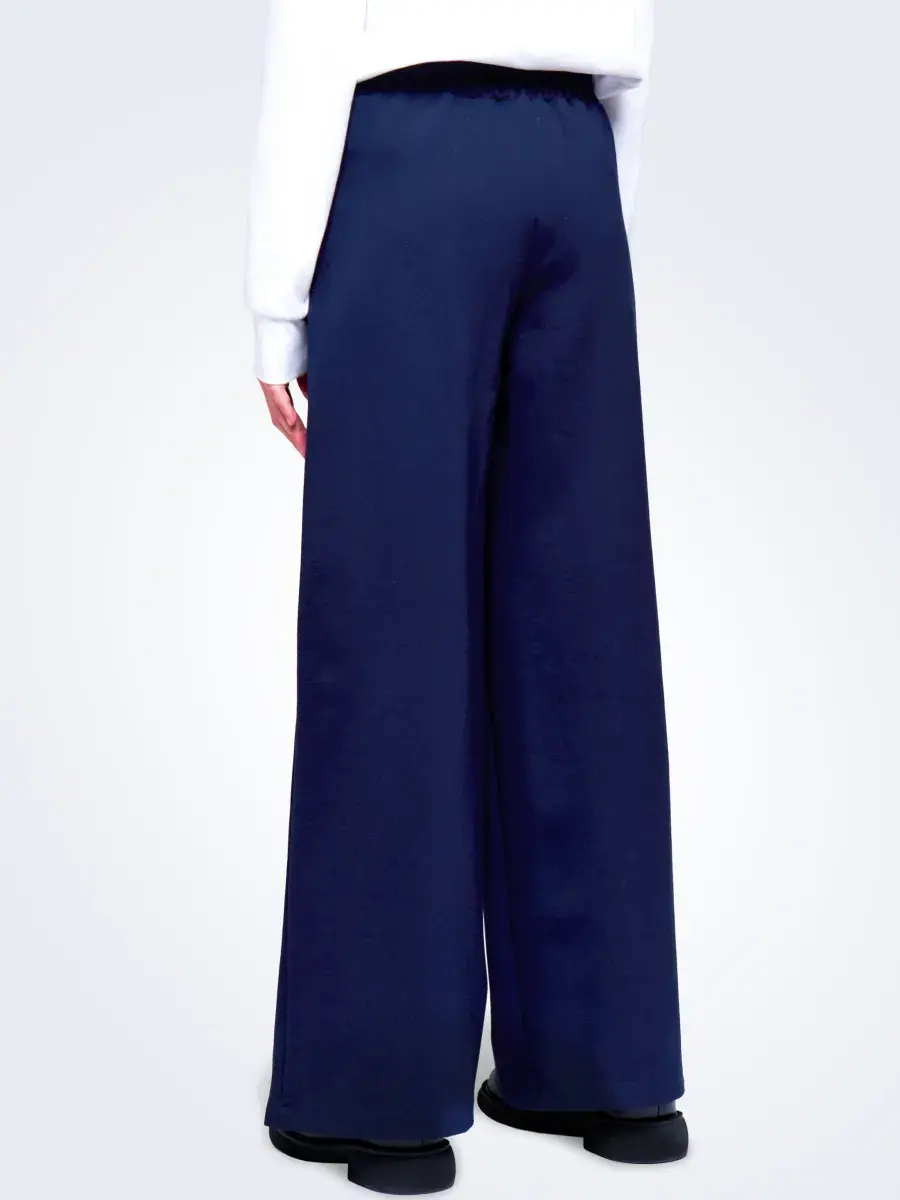Широкие палаццо с высокой посадкой визуально удлиняют ноги и скрывают бедра, создавая элегантный деловой стиль. Универсальные демисезонные или летние брюки можно носить с блузками, водолазками создавая как базовый, так и молодежный модный образ.